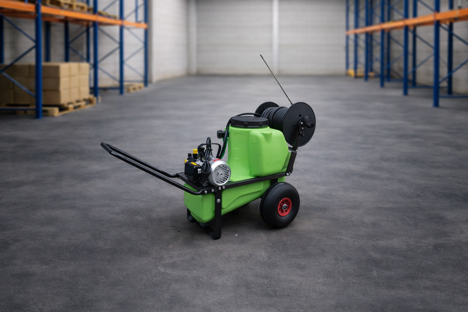 Pompante in materiale plastico, facilmente smontabile per la pulizia e manutenzione, con cilindro stantuffo di grandi dimensioni per facilitare la messa in pressione del serbatoio.